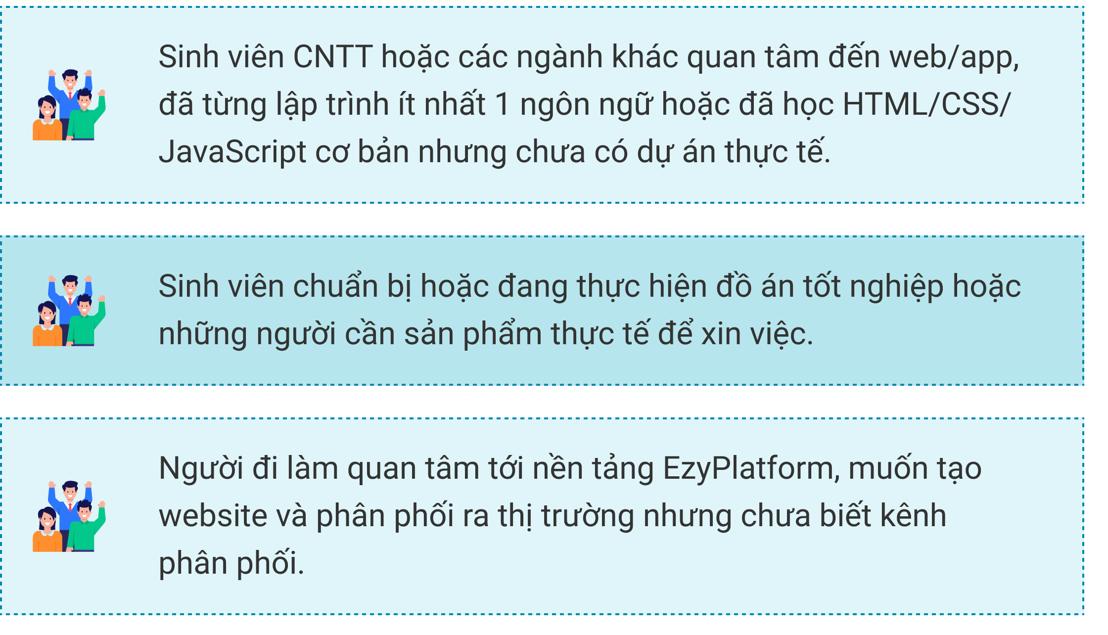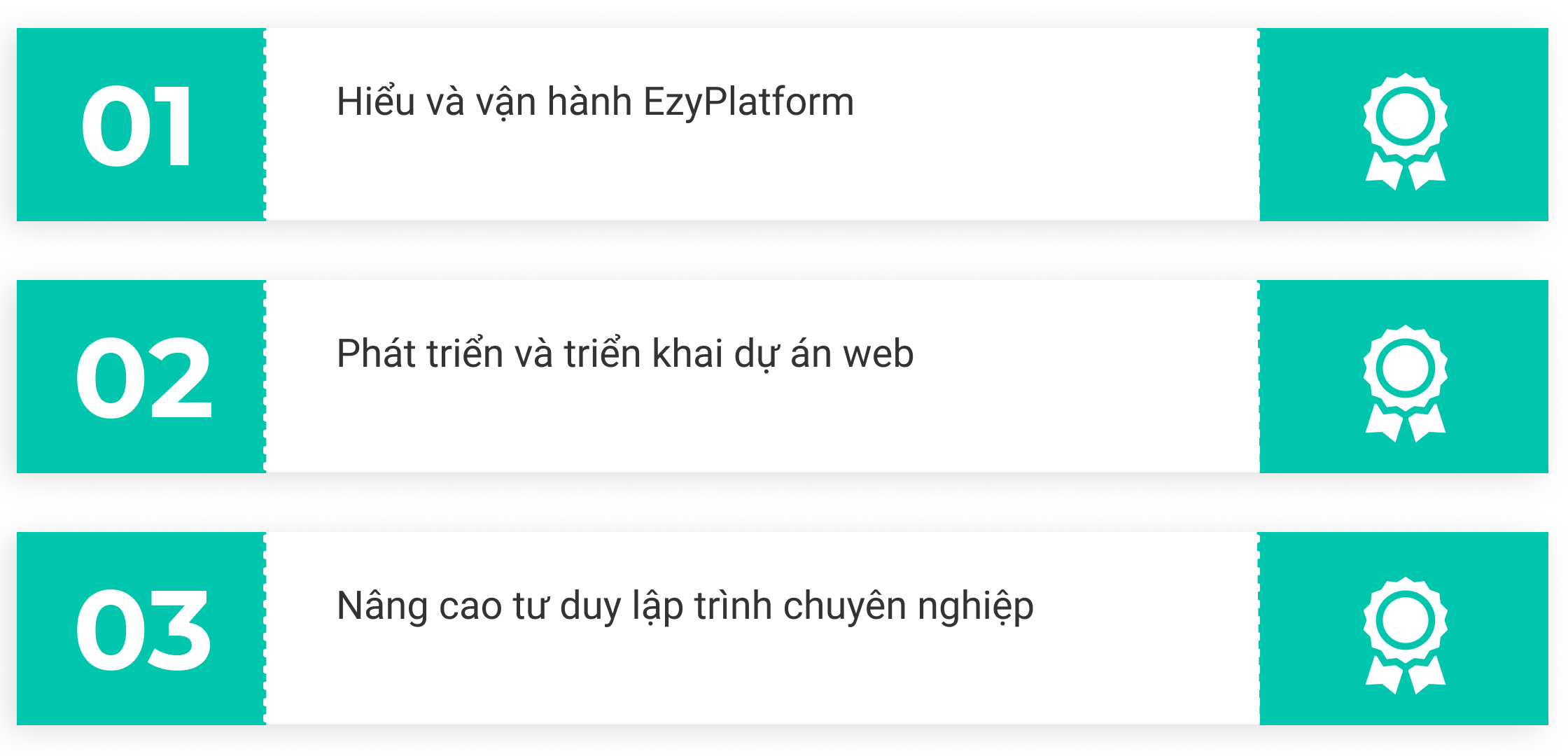 Mục tiêu của khóa học là giúp người học nắm vững kiến thức cơ bản về lập trình web, hiểu quy trình xây dựng website, thực hành tạo sản phẩm hoàn chỉnh trên EzyPlatform đồng thời kết nối với các ý tưởng sản phẩm thực tế.